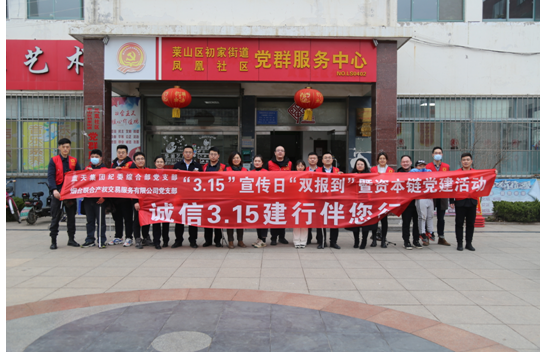 為進(jìn)一步普及社區(qū)群眾消費(fèi)者權(quán)益知識(shí),增強(qiáng)日常消費(fèi)、網(wǎng)絡(luò)消費(fèi)、金融消費(fèi)的維權(quán)意識(shí)。3月15日下午,藍(lán)天集團(tuán)紀(jì)委綜合部黨支部和煙臺(tái)聯(lián)合產(chǎn)權(quán)交易服務(wù)有限公司黨支部邀請(qǐng)聯(lián)合產(chǎn)權(quán)“資本鏈”黨總支聯(lián)盟單位,以紅色黨建為引領(lǐng),以消費(fèi)者權(quán)益日為契機(jī),在初家街道鳳凰社區(qū)開展“3.15”宣傳日雙報(bào)到暨資本鏈黨建活動(dòng)。集團(tuán)黨委委員、聯(lián)合產(chǎn)權(quán)黨支部書記、董事長初志杰同志,集團(tuán)黨委委員、紀(jì)委書記湯志厚同志,以普通黨員身份參加。