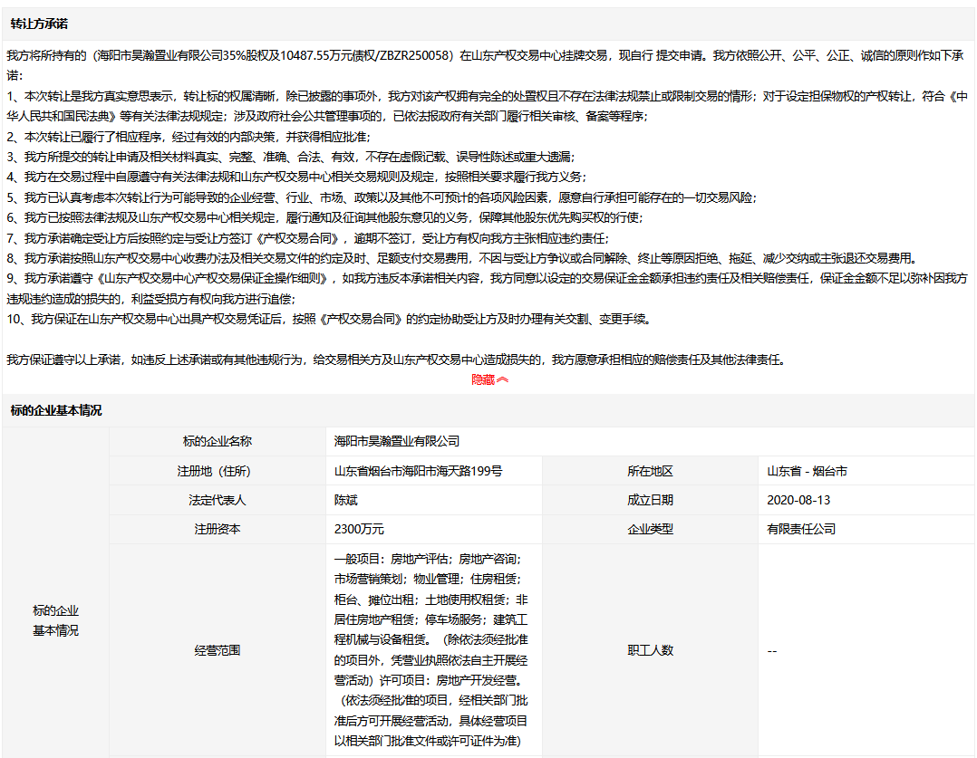 轉讓方:海陽市昊海置業(yè)有限公司