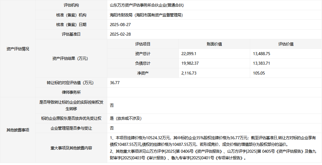 煙臺亞中海產(chǎn)品有限公司60%國有股權