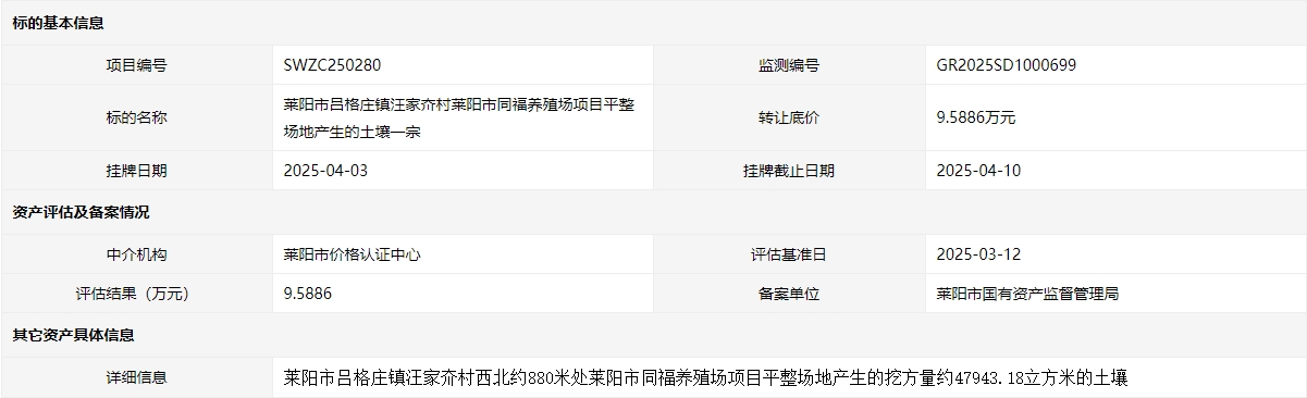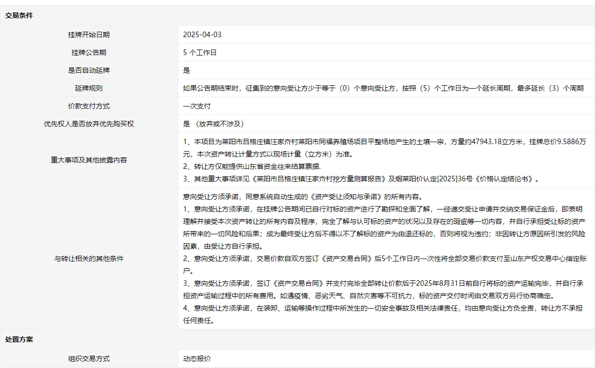 - 掛牌起止日期:2025年04月03日至2025年04月10日