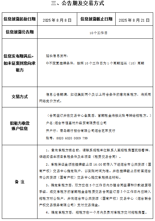 掛牌起止日期:2025年8月8日至2025年9月18日