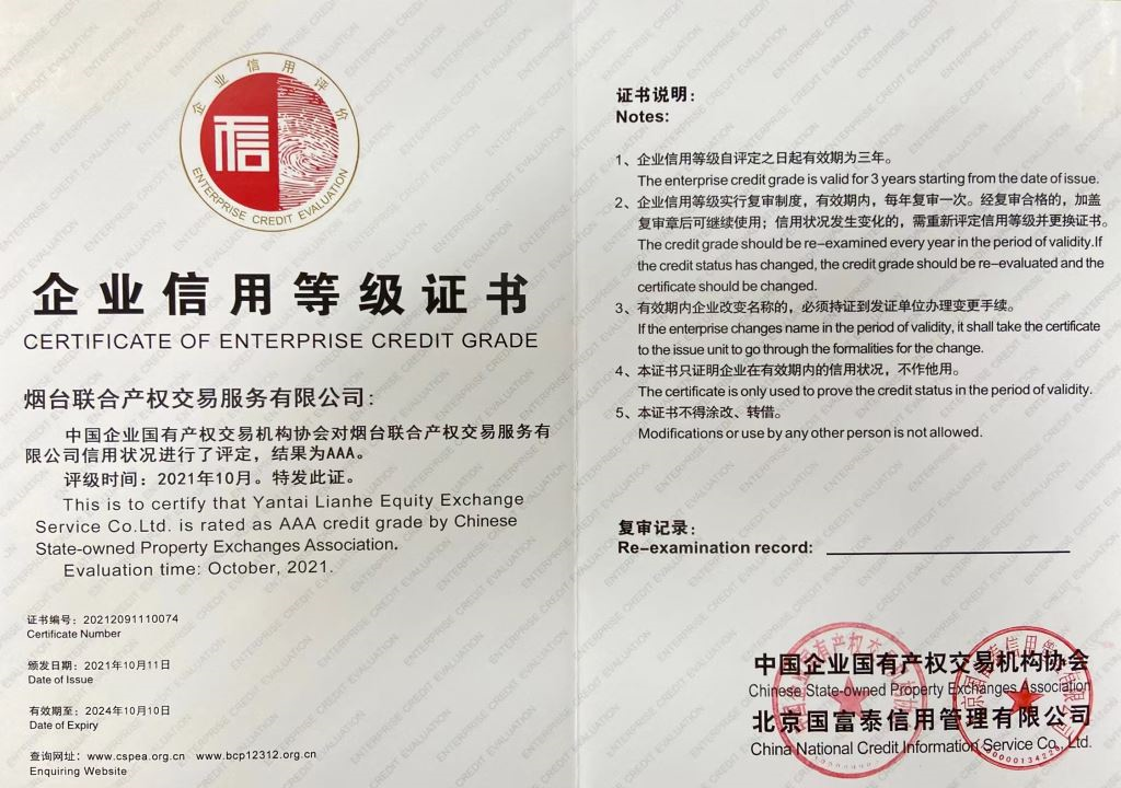 2022年產(chǎn)權(quán)交易行業(yè)信用評價復(fù)審結(jié)果在全國行業(yè)信用公共服務(wù)平臺和中國產(chǎn)權(quán)網(wǎng)進(jìn)行公示,煙臺聯(lián)合產(chǎn)權(quán)在協(xié)會信用評價復(fù)審中,繼續(xù)維持AAA級評定不變。