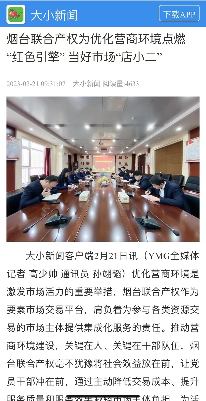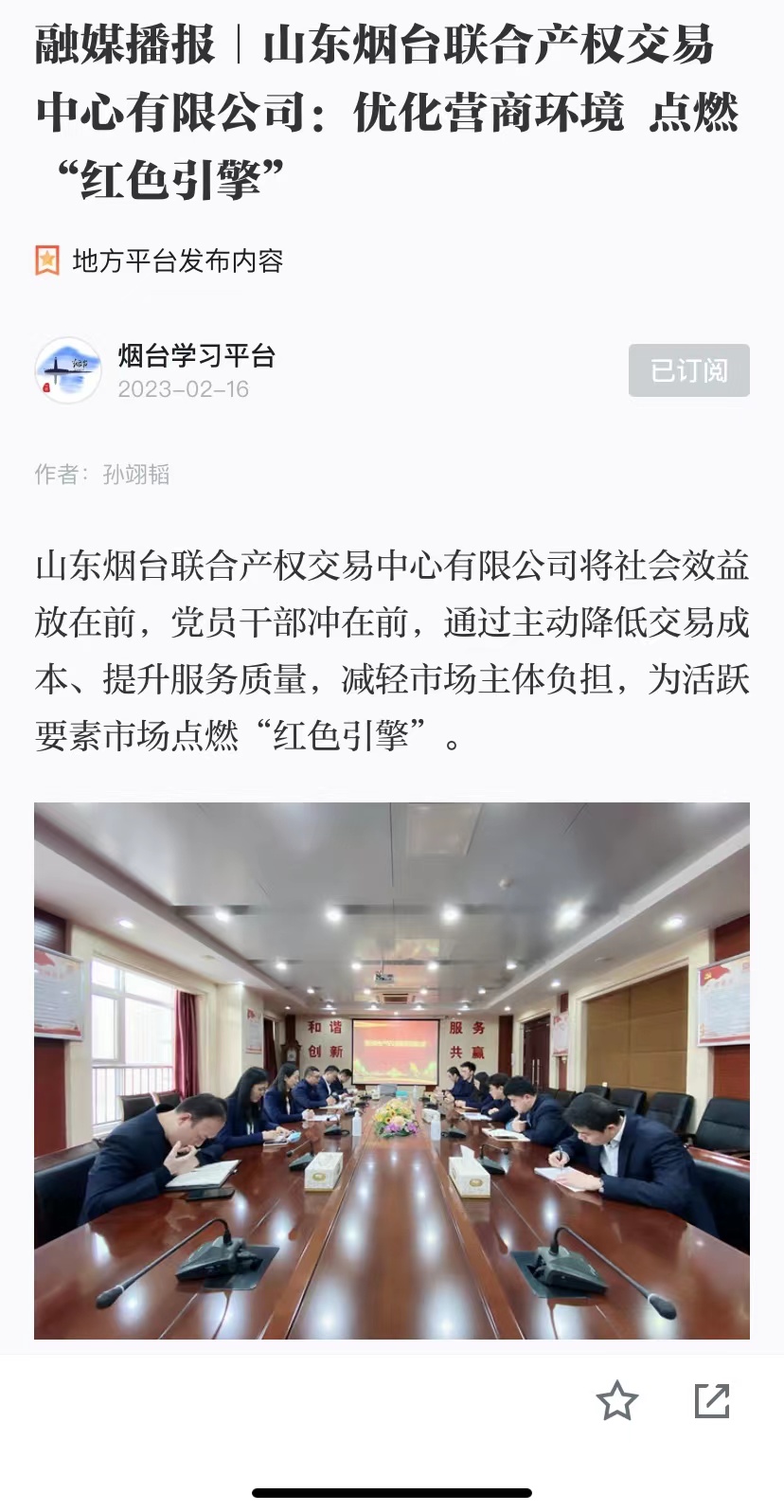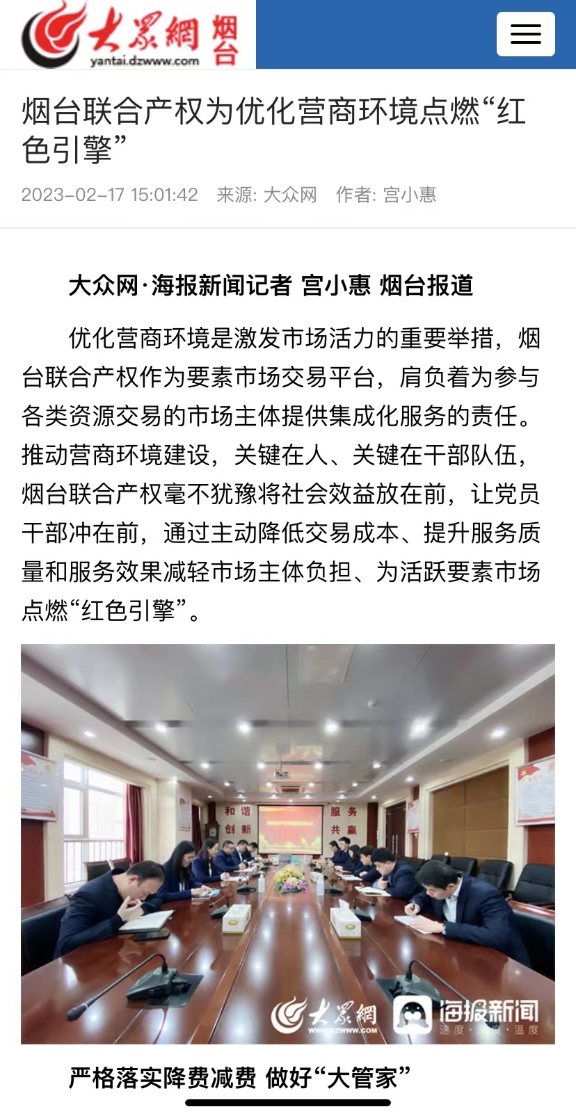 近日,“學(xué)習(xí)強(qiáng)國”煙臺(tái)平臺(tái)、煙臺(tái)日報(bào)社大小新聞網(wǎng)、大眾網(wǎng)煙臺(tái)刊發(fā)署名文章《煙臺(tái)聯(lián)合產(chǎn)權(quán)為優(yōu)化營商環(huán)境點(diǎn)燃“紅色引擎”當(dāng)好市場“店小二”》,全面介紹了2022年煙臺(tái)聯(lián)合產(chǎn)權(quán)作為要素市場交易平臺(tái),肩負(fù)著為參與各類資源交易的市場主體提供集成化服務(wù)的責(zé)任,在推動(dòng)營商環(huán)境建設(shè)方面,毫不猶豫將社會(huì)效益放在前,讓黨員干部沖在前,通過主動(dòng)降低交易成本、提升服務(wù)質(zhì)量和服務(wù)效果減輕市場主體負(fù)擔(dān)、為活躍要素市場點(diǎn)燃“紅色引擎”。